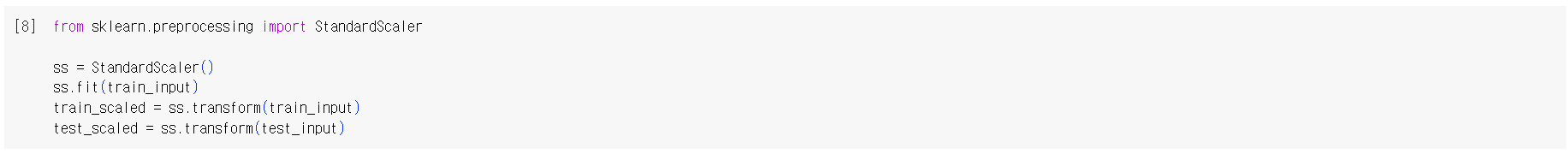 5. 표준화 전처리 진행: StandardScaler 클래스 사용